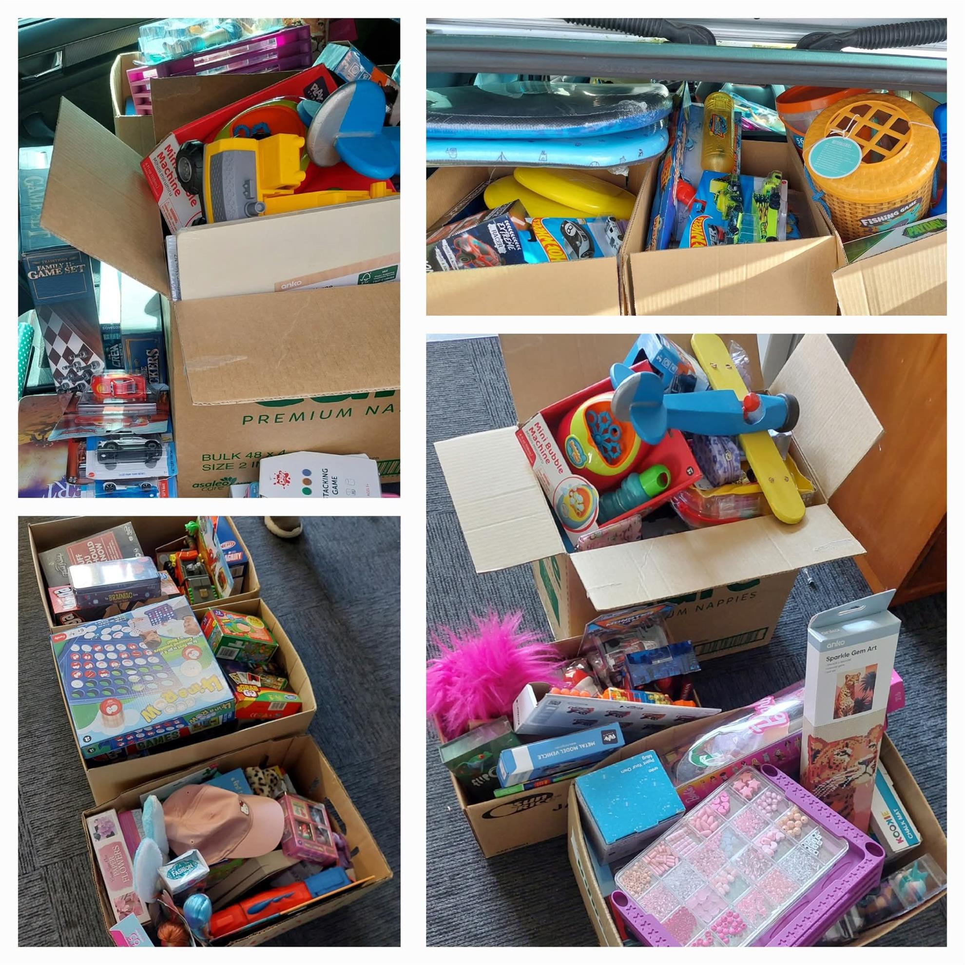 Mid winter present delivery to the Children's Ward at Hutt Hospital (along with the Women's Refuge and Birthright charities) with gifts left over from 2024's Tree of Joy.