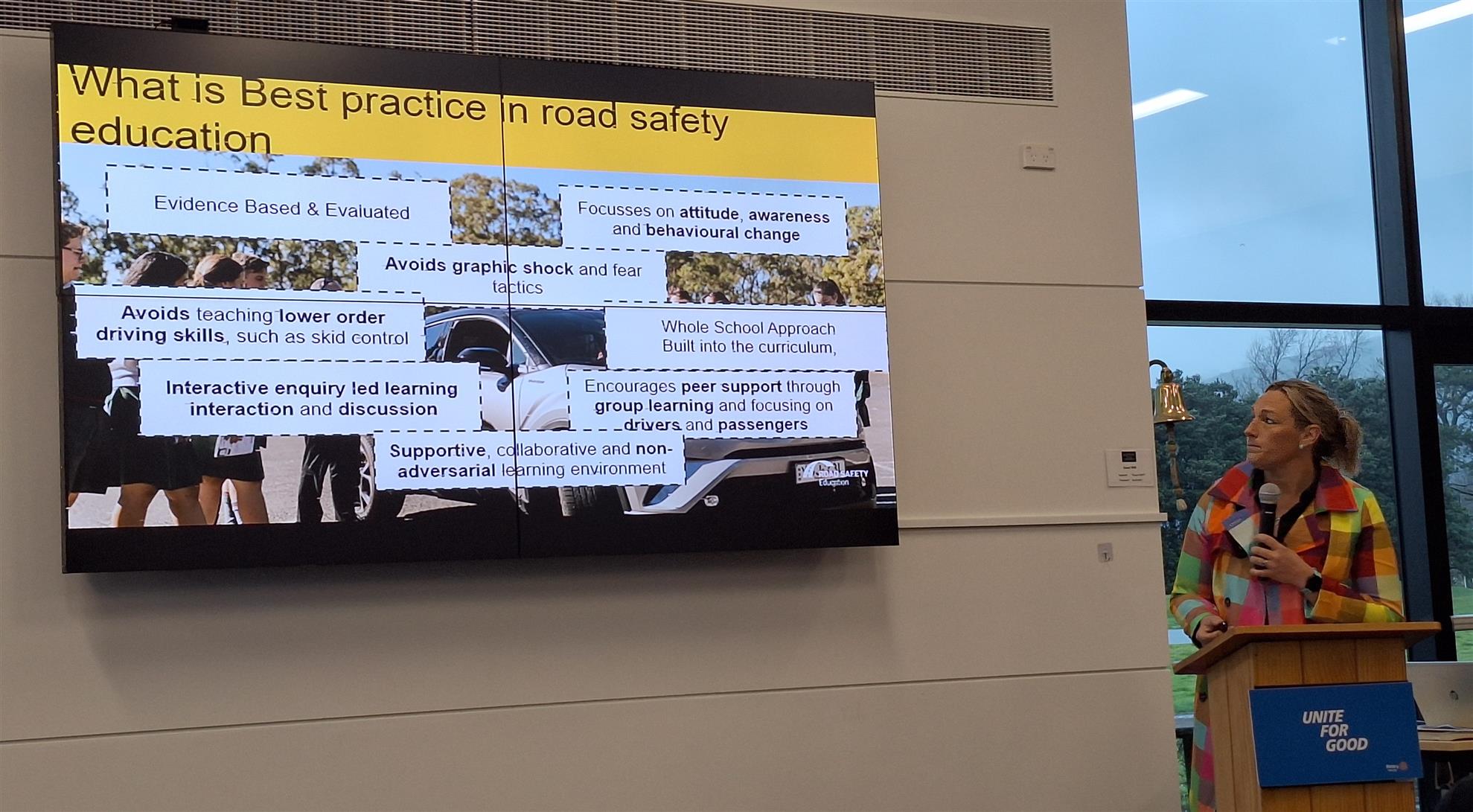 Road safety was the main theme of the Breakfast meeting and the first of two speakers, Lee Bell, from Youth Inspire based in Taita gave a short presentation on the benefits of providing volunteer driving mentoring, of one or two hours per week. The main gap was for young persons between school and the start of their careers, with many receiving driving infringements before they started work. Lower Hutt currently had the highest unlicensed numbers in the Wellington region. She reported on the sad case of a young woman who had been driving unlicensed from the age of 9 until 23, forced to drive becasue her mother was an alcoholic.